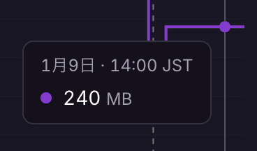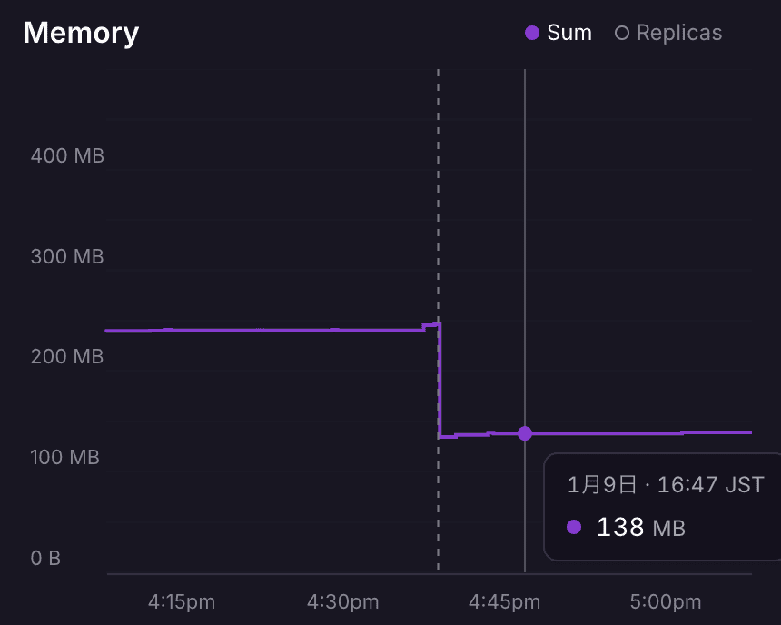 その他にもCPUやボリュームの使用量が加算されますが、放置運用だとCPUもボリュームもほぼ使わずこちらは$0に近いのですが、メモリだけはサービス稼働させるために常に使用する形になるので、コストが掛かってくるのはメモリ使用量と捉えて良い。